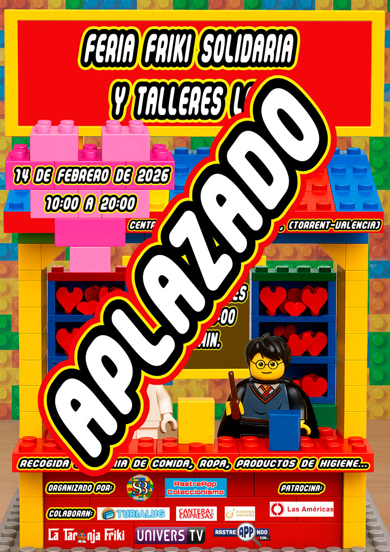La organización de La Feria Friki Solidaria y Talleres LEGO ha decidido aplazar su celebración, prevista para el próximo sábado 14 de febrero, como medida preventiva ante las alertas meteorológicas activadas en la provincia de Valencia y siguiendo las recomendaciones de los organismos oficiales.